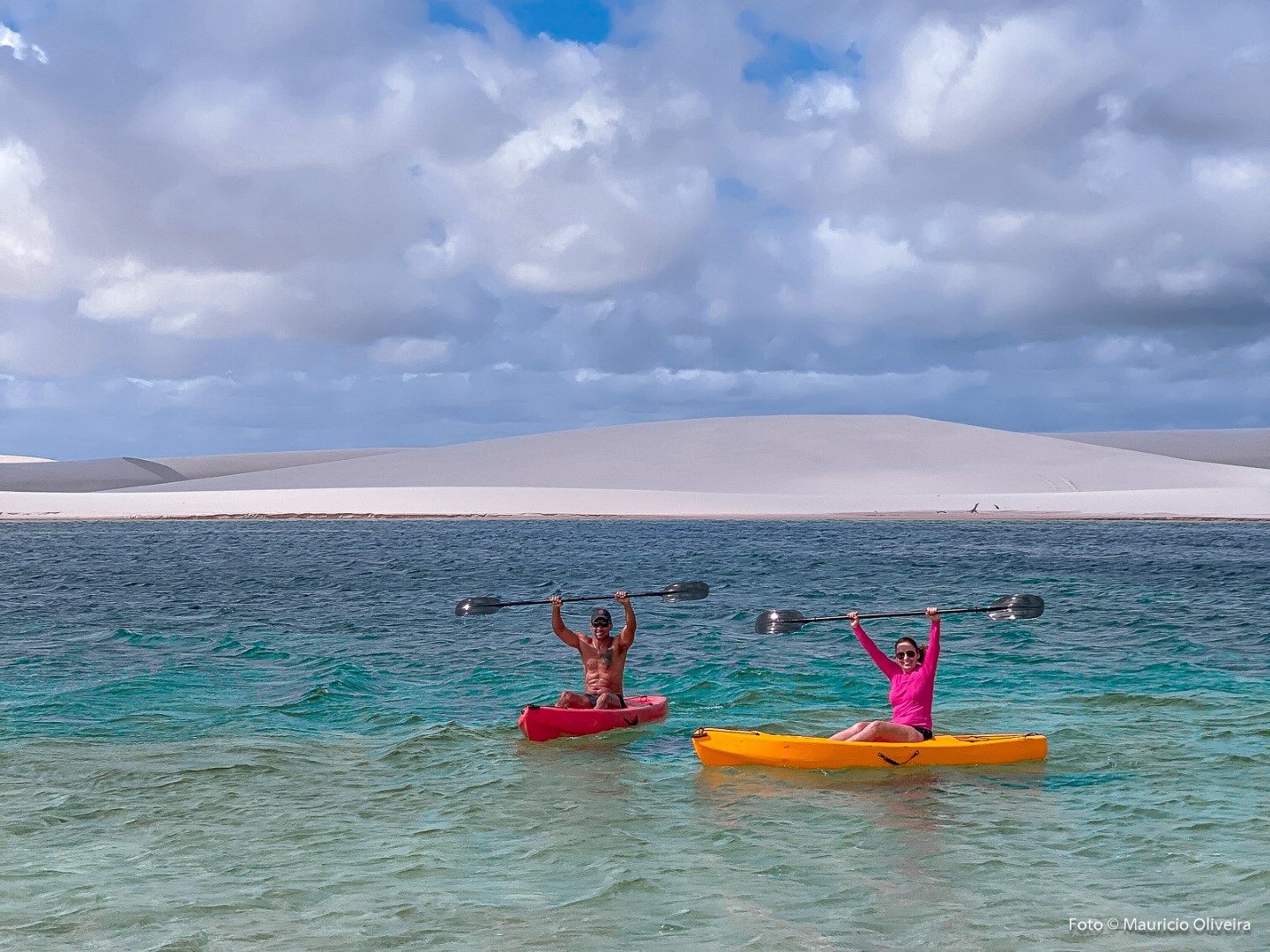 Lagoas interdunares – Na temporada das chuvas fortes (de Janeiro a Maio) muitas lagoas acabam se unindo e rompendo. Todo esse volume de água flui para rios e córregos na região, escorrendo direto pros lençóis freáticos. Antes disso acontecer, é possível fazer belos passeios de caiaque por entre lagoas margeadas pelas enormes dunas do parque. É possível alugar caiaques para levar nos passeios ou contratar tudo privativo. Valores a partir de 400 reais por caiaque. Cotação em 2023.