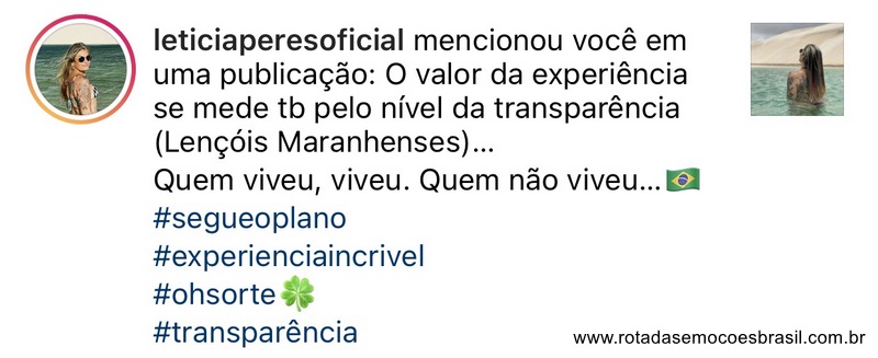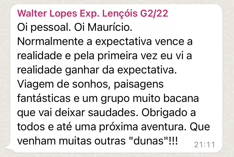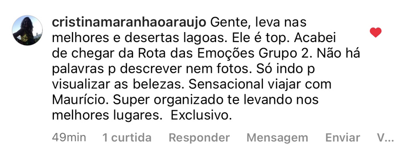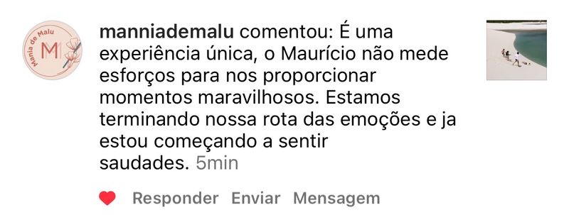“Da expedição pra vida“, essa é uma das frases que tem se tornado rotineira ao término das minhas viagens em grupo pela Rota das Emoções e também pelos Lençóis Maranhenses. Isso é sobre relacionamento. É sobre entregar sempre o máximo e surpreender nos mínimos detalhes. É sobre cuidado e atenção. É a realização de um sonho e lindos depoimentos tatuados pra sempre no meu coração.
