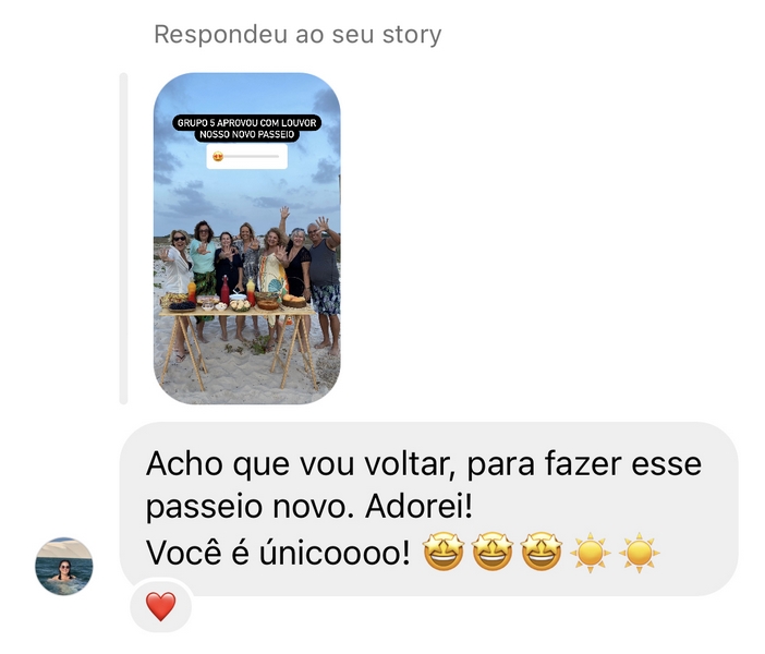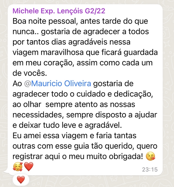 O resultado disso são clientes que viram amigos. Abaixo estão apenas alguns dos muitos depoimentos de clientes e amigos que recebo após as Expedições, tanto no Zap quanto nas redes sociais. Eu fico sem palavras para agradecer tanto carinho. Pura gratidão. <3